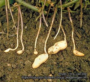 Root-knot nematodes (Meloidogyne spp.) may cause considerable yield loss in groundnut; they can be controlled by crop rotation.