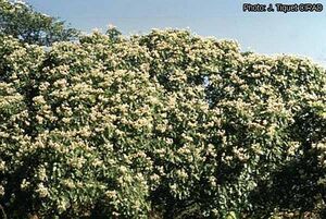 Trees often flower at the end of the dry season. In Côte d’Ivoire flowering of trees has been recorded in January–May and in Ghana in January–July. Fruits ripen about 6 months later.