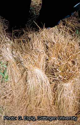 Fonio grain is a valuable, easily digested feed for farm animals. The straw and chaff are excellent fodder and are often sold in markets for this purpose. Chopped fonio straw is mixed with clay to build walls of houses. The straw is also used as fuel for cooking or to produce ash for potash. Fonio grain is considered to have medicinal properties; it is recommended for lactating women and diabetic people.