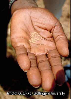 So far fonio has been largely neglected in breeding programmes. Breeding efforts are being undertaken in Guinea, but no results are available so far. Improvement of fonio through traditional hybridization does not seem attractive because of insufficient knowledge on its floral biology and the extraordinarily miniature nature of its floral organs.