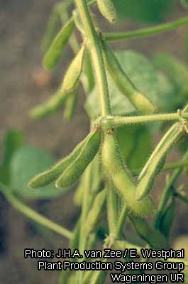 Soya bean is grown from the equator to latitudes 55°N or 55°S, at altitudes from close to sea level up to 2000 m. Although the crop grows well under a wide range of temperatures, the optimum temperature for growth and development is in general around 30°C. Both excessively 32°C) and low (<20°C) temperatures can reduce floral initiation and pod set. Soya bean requires at least 500 mm water during the growing season for a good crop; water consumption under optimal conditions is 850 mm. Drought stress during flowering reduces pod-set but drought during pod-filling reduces yield even more. Soya bean can tolerate brief waterlogging but weathering of seed is a serious problem under humid conditions. Soya bean is considered a quantitative short-day plant, but some cultivars are insensitive to photoperiod. The response to photoperiod interacts strongly with temperature, and given the relatively small variation in daylength in the tropics, temperature is the major factor influencing the rate of phenological development. The photoperiod sensitivity means that types brought directly into tropical Africa from North America will often flower and set seed before they have fully developed, restricting their yields.