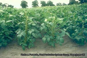 Soya bean is usually weeded 1–3 times during the first 6–8 weeks after planting, after which its canopy should be sufficiently developed to suppress weeds. Irrigation is uncommon except for dry season production. Basal fertilization with 20–25 kg P per ha is often required for adequate symbiotic N2-fixation and general growth. Soya bean is commonly grown in rotation with cereals, such as maize, rice, sorghum, wheat and finger millet, whereby all fertilizer may be applied to the cereal.