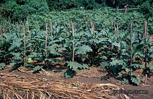 Leaves and fruits of gboma are common market vegetables in many African countries, but statistics on production and trade are not available. There is some export of gboma fruits from Senegal and Uganda to European markets (Paris, Brussels). In the Caribbean (Santo Domingo) and Suriname gboma fruits are produced for export to the United States and Europe (Amsterdam).