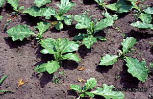 The 1000-seed weight is about 1.7 g. Seeds are sown in a nursery and are spaced at 20 cm between the rows. Presoaking of seeds in hydrogen peroxide for 24 hours generally improves germination. Seedlings of leafy cultivars are transplanted after 4–6 weeks at a spacing of 50 cm × 50 cm. The spacing for fruit cultivars is about 1 m × 1 m. Fruit cultivars require more frequent watering than the leaf cultivars as drought causes seeds to develop faster making the fruits unsuitable for consumption. When preparing beds it is recommended that NPK 15-15-15 fertilizer be added at a rate of 80–100 kg/ha.