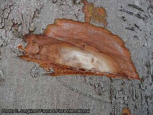 Après l’abattage, les grumes doivent être rapidement débardées car le bois est sujet au bleuissement et aux attaques des insectes xylophages.