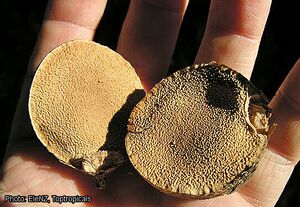 - Rayons : 96 : rayons exclusivement unisériés ; 104 : rayons composés uniquement de cellules couchées ; 106 : rayons composés de cellules couchées avec une rangée terminale de cellules dressées et/ou carrées ; (107 : rayons composés de cellules couchées avec 2 à 4 rangées terminales de cellules dressées et/ou carrées) ; 115 : 4–12 rayons par mm.